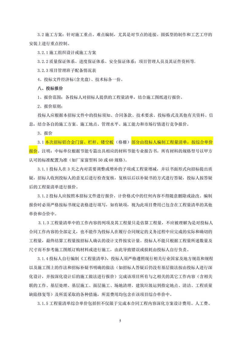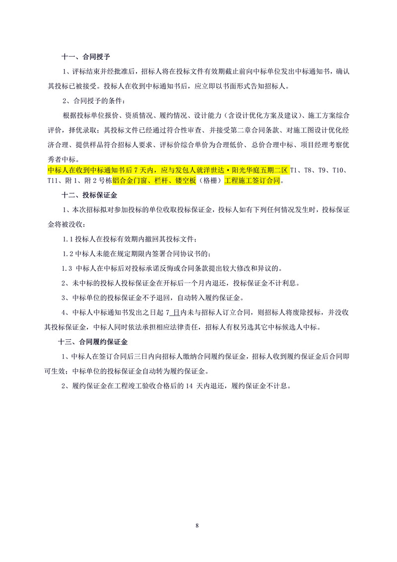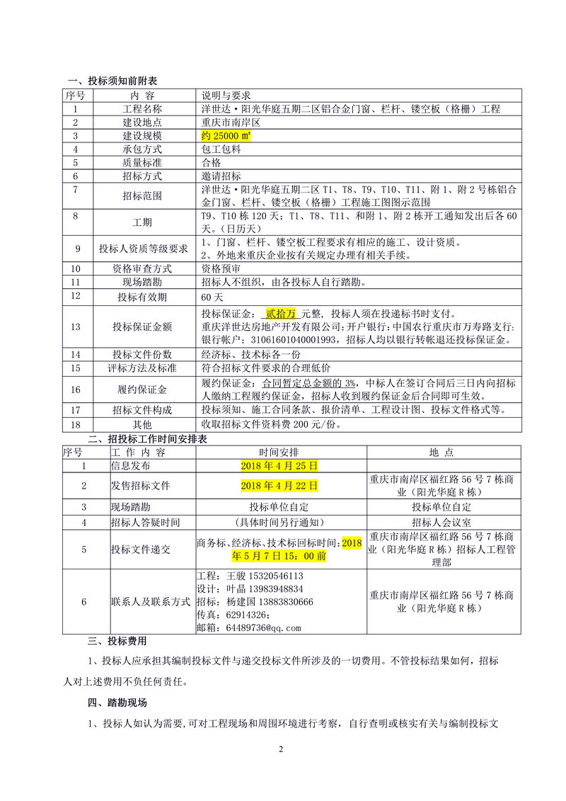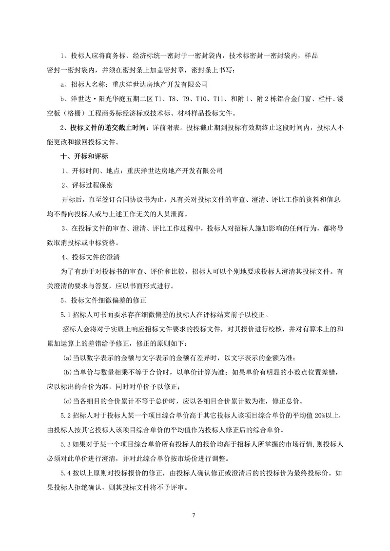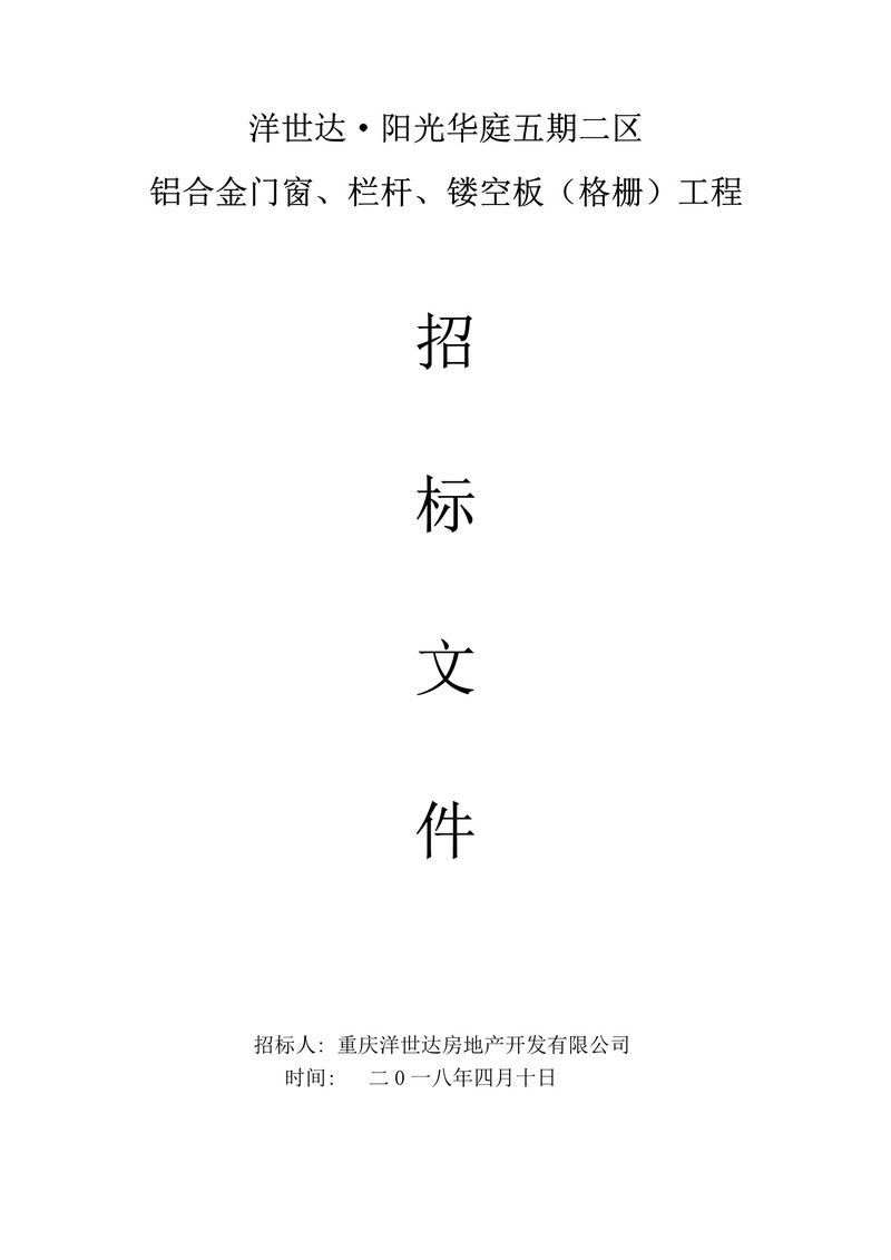 洋世達?陽光華庭五期二區鋁合金門窗、欄桿、鏤空板(格柵)工程招標文件