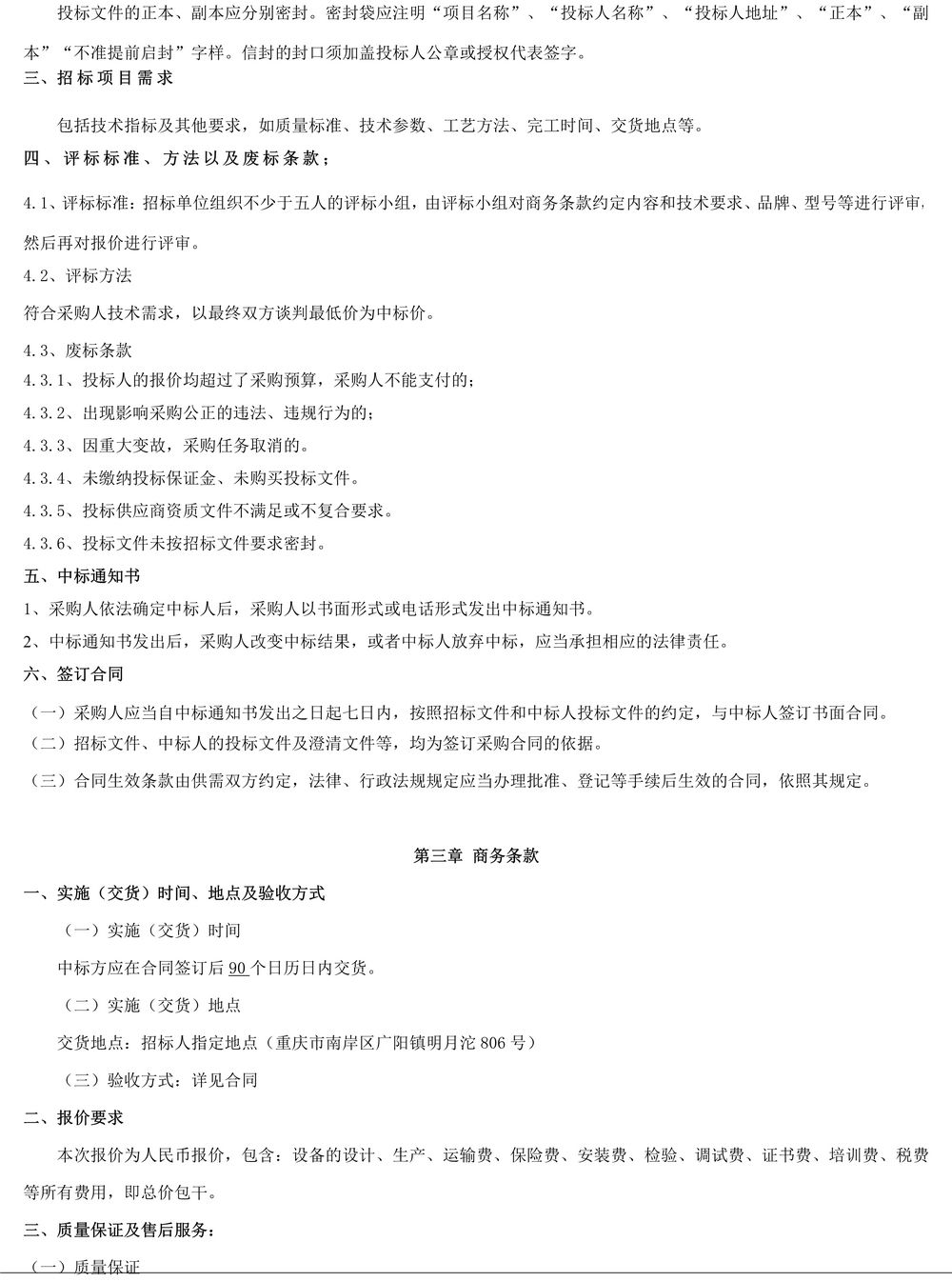 重慶市沙坪壩區交通服務中心22米巡邏艇電設備采購招標文件